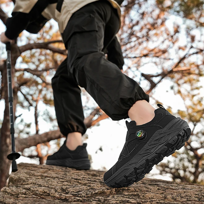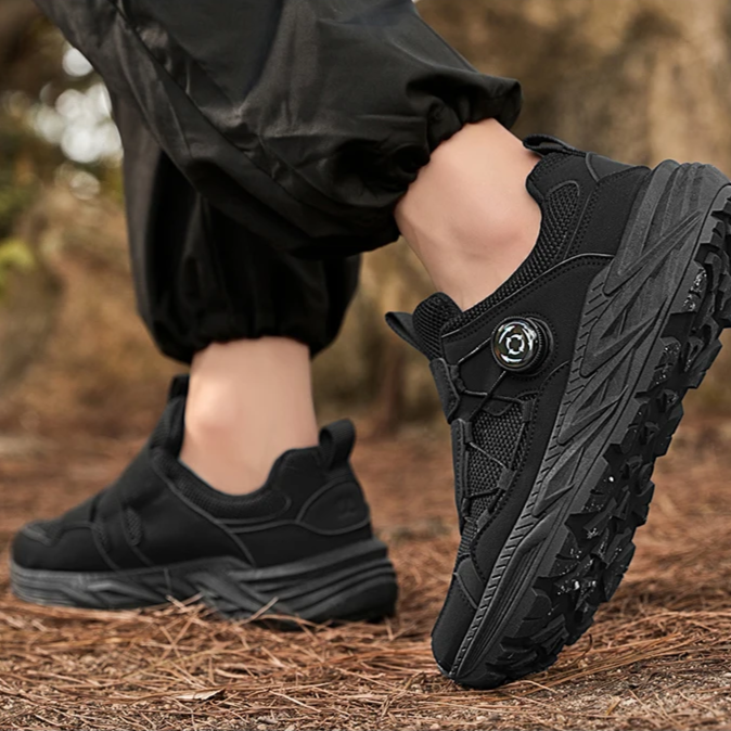These sneakers are built for action whether you're hitting trails or exploring a city. The real game-changer? A built-in twist-lock dial system that replaces traditional laces, giving you a custom fit in seconds. Add in a rugged sole for traction and breathable mesh for airflow, and you've got a pair that’s all grip, no slip, and zero fuss.