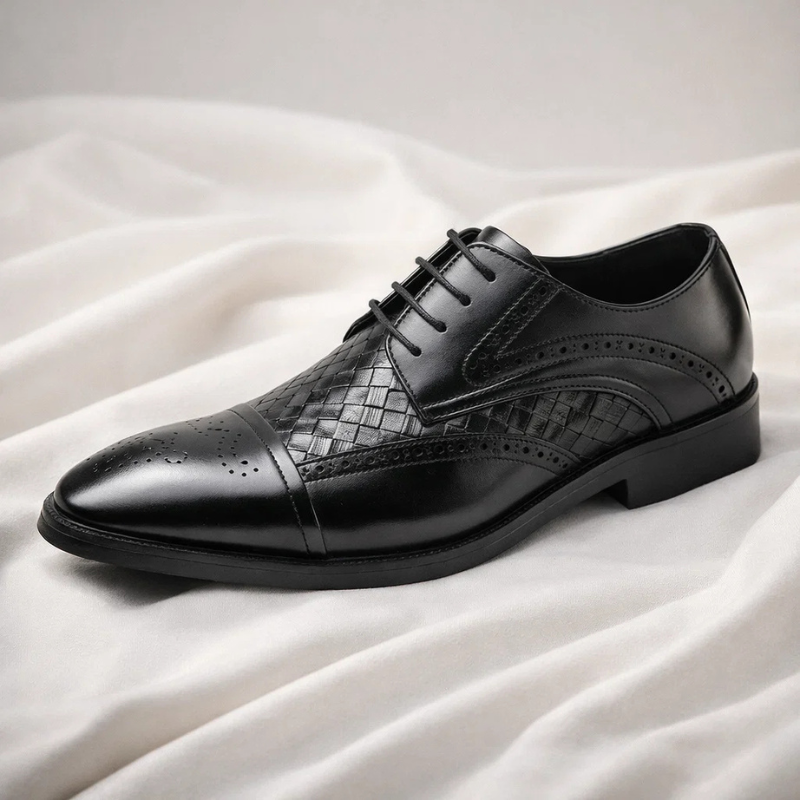 Crafted from genuine leather, this pair features sharp brogue detailing and a quilted texture across the upper. A cushioned insole and structured silhouette bring all-day comfort without compromising the clean, polished finish that defines every step.