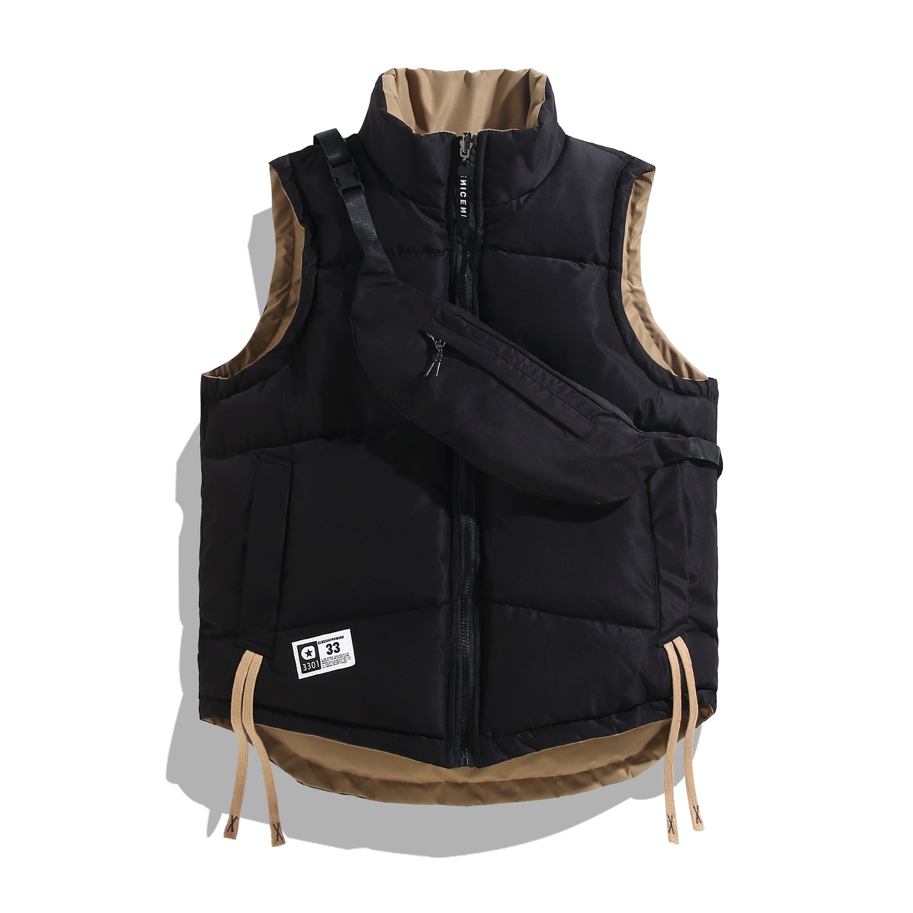 This vest brings a bold, adventure-ready edge — whether you're on a hike, in the city, or shoveling snow in the yard. Designed with an attached crossbody pouch and street-ready patch details, it's a high-end look built for everyday movement.
