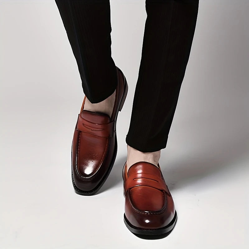 Crafted from genuine Italian leather, these loafers feature a rich, polished finish that catches the light with every step. A sleek silhouette and contoured insole cradle your feet in comfort all day long.